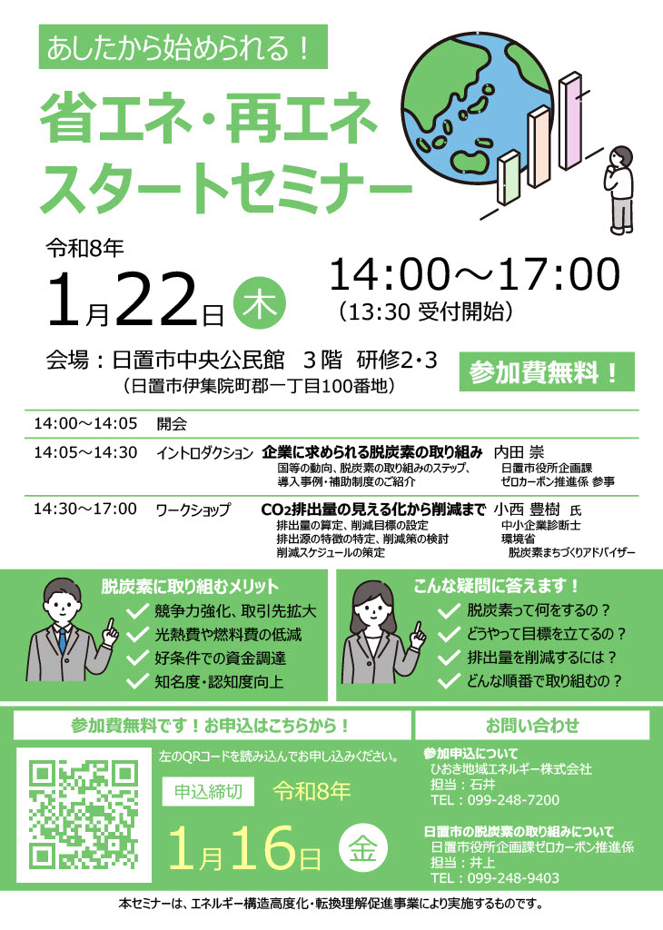[日置市商工会] 省エネ・再エネ スタートセミナー開催のお知らせ