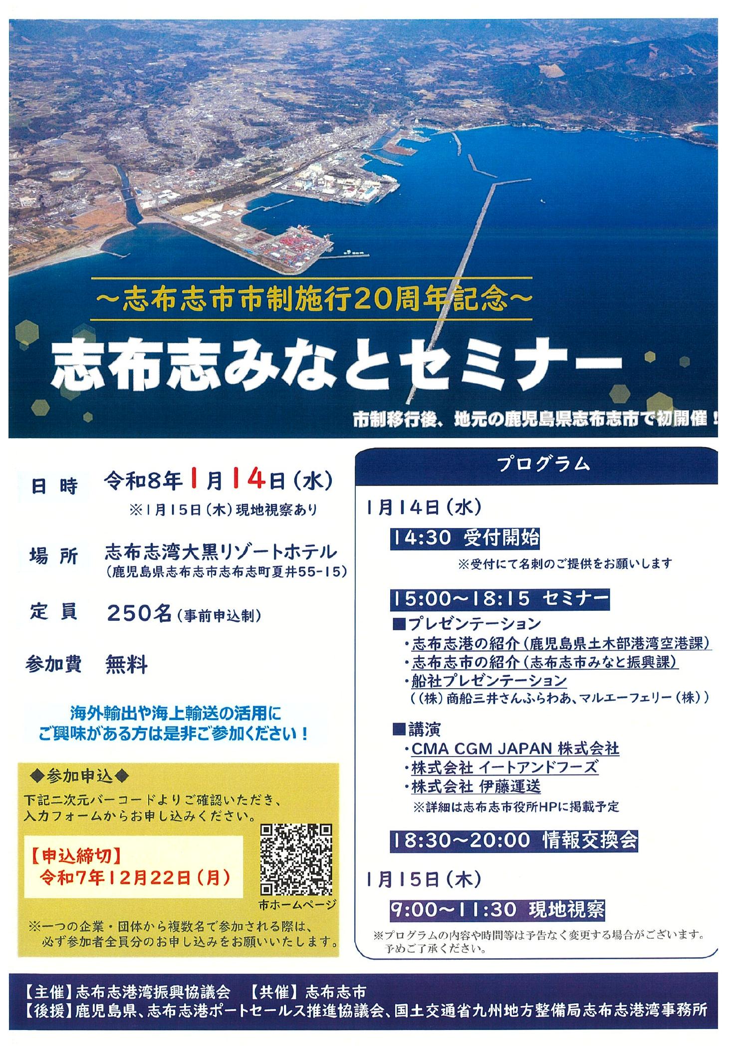 [垂水市商工会] 志布志市 市制施行20周年記念『志布志みなとセミナー』の開催について