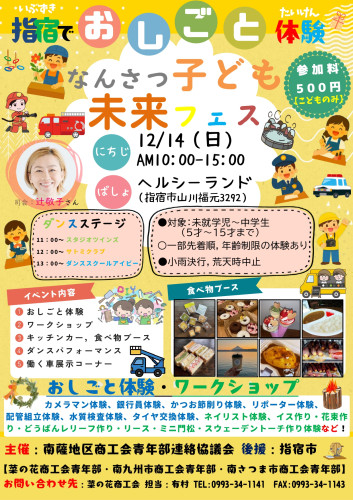 12月14日(日)ヘルシーランドで、子供のお仕事体験イベント「南薩子ども未来フェス」を開催致します。会場内には、様々なお仕事体験やワークショップブース、キッ...