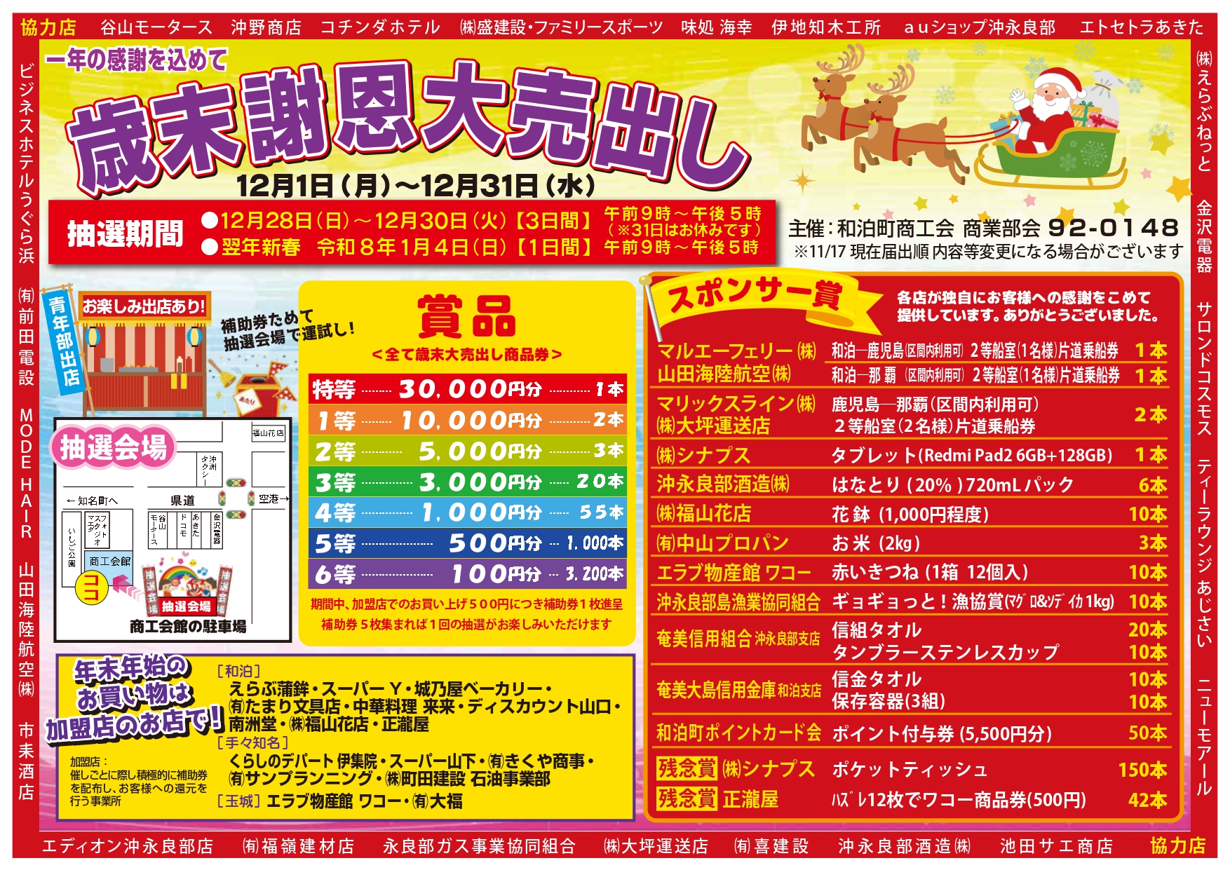 [和泊町商工会] 歳末謝恩大売出し・抽選会のご案内