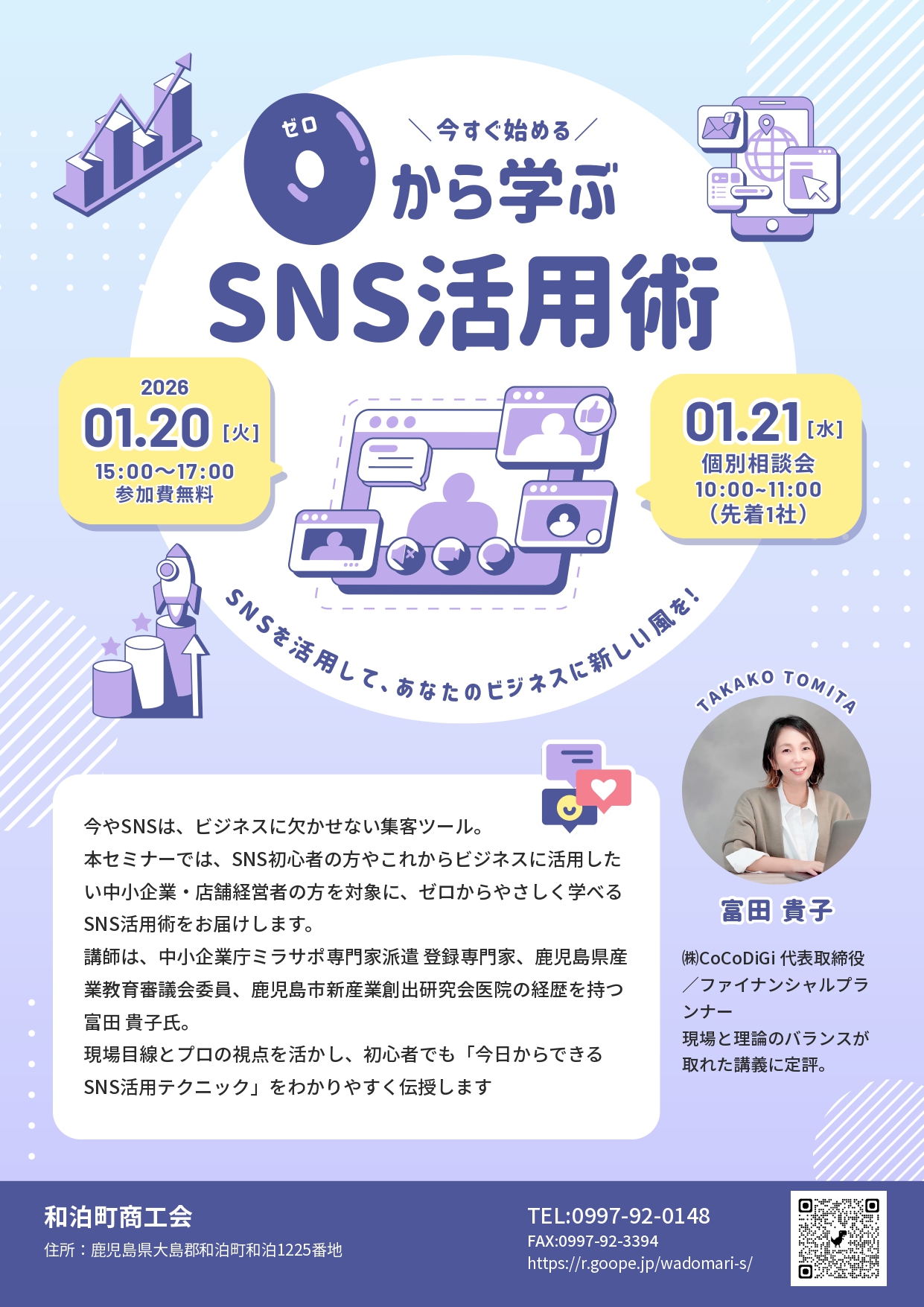 [和泊町商工会] 「ゼロから学ぶSNS活用術」セミナー開催のご案内